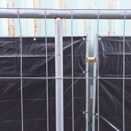Dit hek is niet geschikt om zeilen, doeken of banners in te hangen